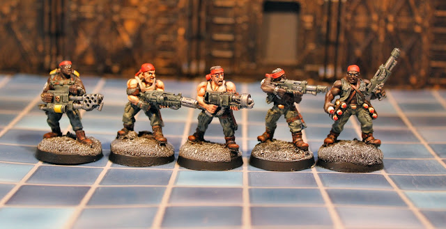 So there you have it, 25 models finished in two sessions of painting. These are meant to enable me to field 3 squads of veterans. I have to paint up a missile launcher to go with the loader and maybe a couple of other heavy weapons to give me some other options for future games. Overall I'm chuffed how they came out. My next update will hopefully feature the Eldar I also worked on during the enforced holiday. Either that or a batrep connected to the Scargill Cleansing.